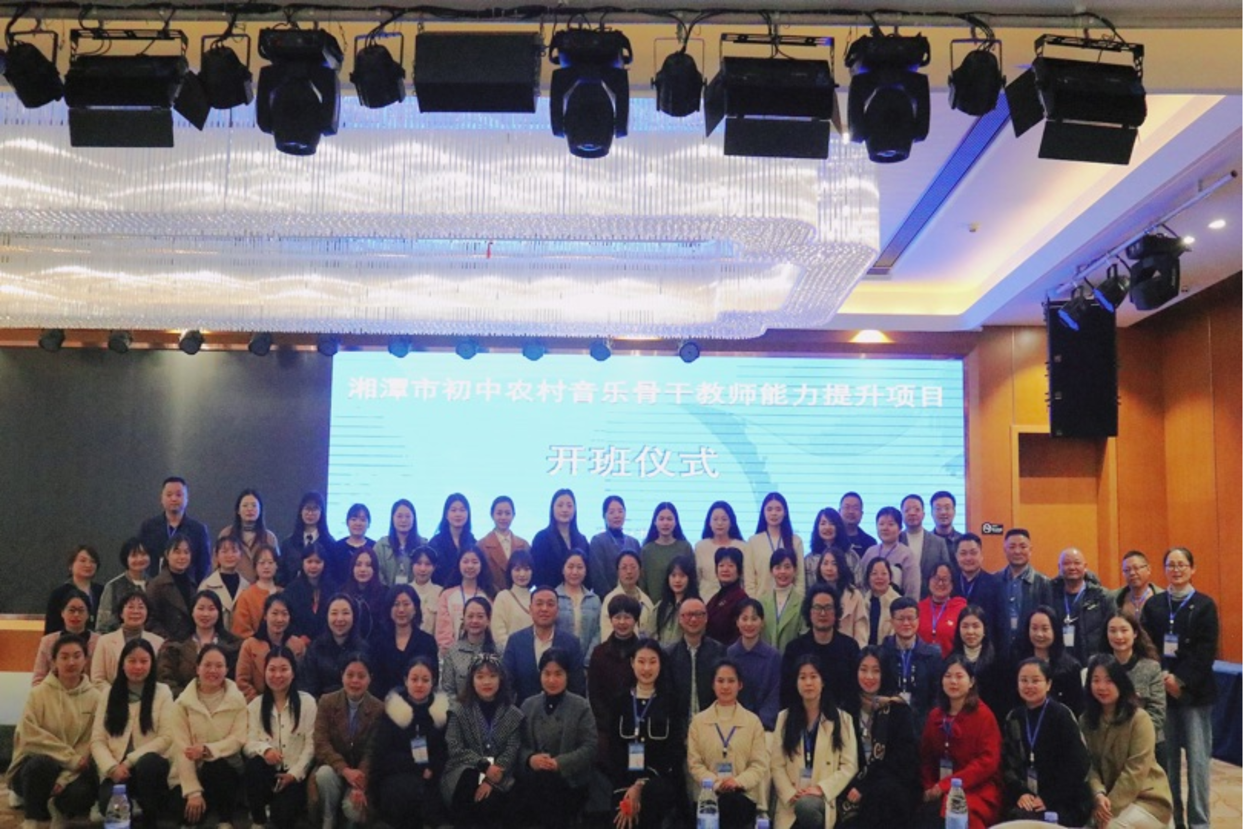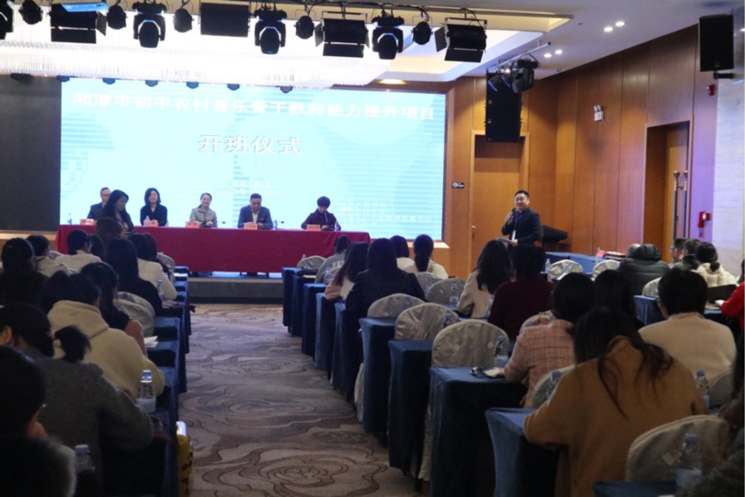 4月23日上午我校与湘潭市教育局,教师发展中心联合举行湘潭市初中农村音乐骨干教师能力提升项目开班仪式。湘潭市教育科学研究院院长成芳、湘潭市教育局教师科科长谭京湘,a片网 副院长王育霖教授,音乐系主任杨姝老师出席此次活动。