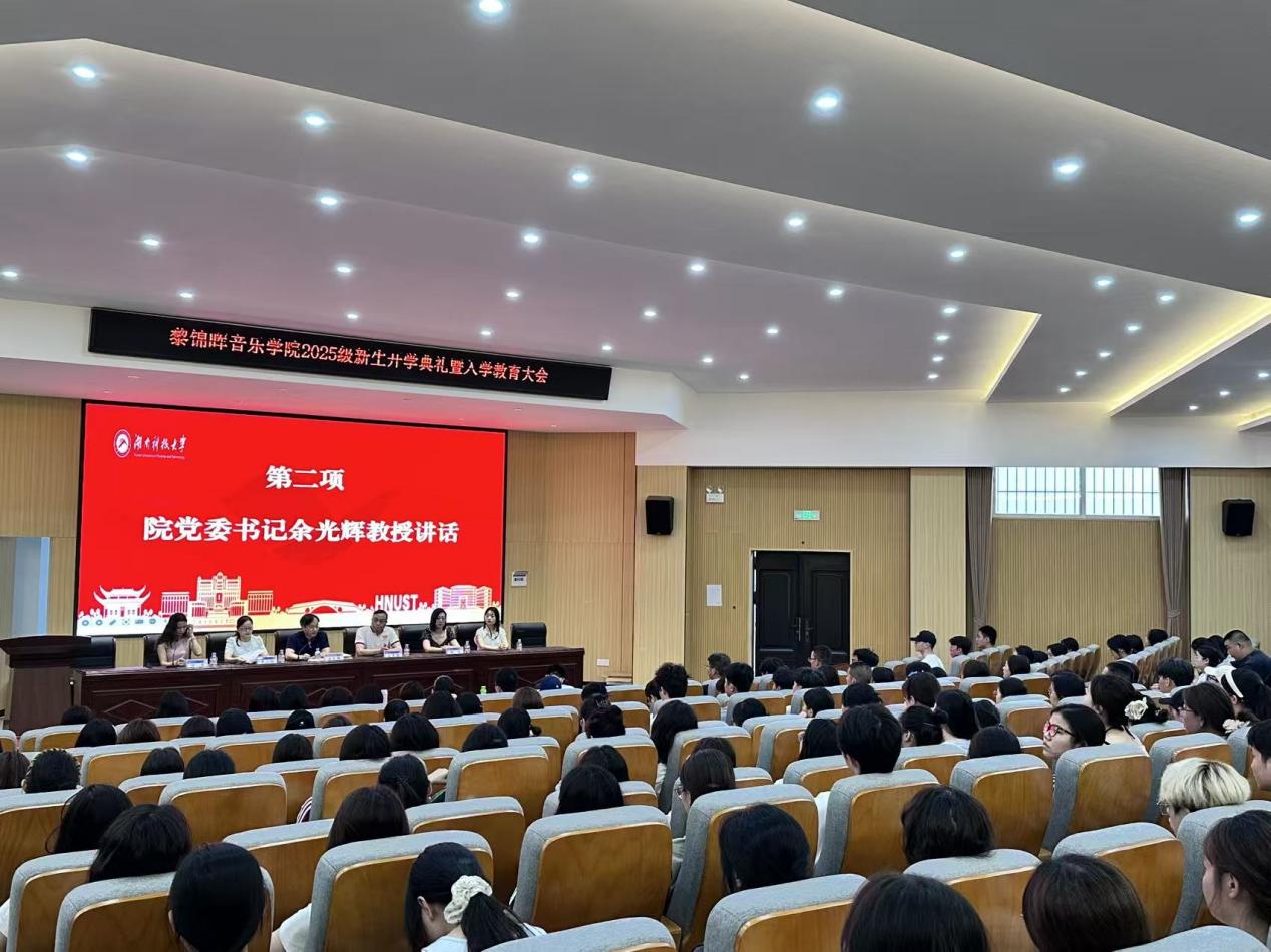 2025级新生开学典礼暨入学教育大会在第五教学楼1-3会议室隆重举行。院党委书记余光辉、主持行政工作的副院长王育霖,音乐系、舞蹈系系主任、新生班主任、全体辅导员及2025级新生共同参加。开学典礼由院党委副书记罗小红主持。