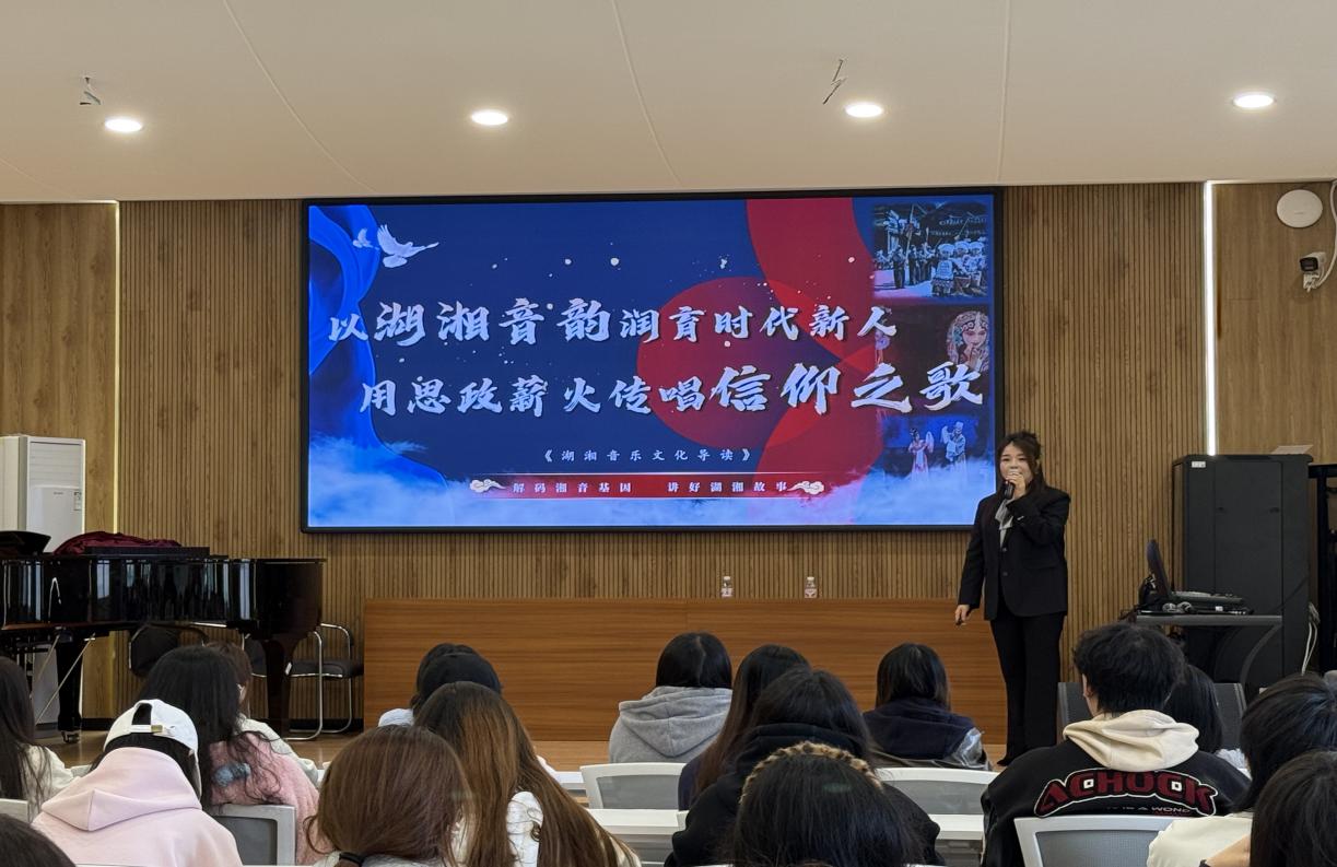 本次课程思政示范课以湖湘文脉传承与红色初心铸魂为核心主线,紧密结合a片网 美育教学与课程思政建设要求,授课教师精心打磨课堂教学设计,深度挖掘湖湘文化“心忧天下、敢为人先、经世致用”的精神底蕴,将湖南本土民间音乐、红色文化资源、声乐专业教学有机融合,让课堂既练专业技能,又厚文化情怀。